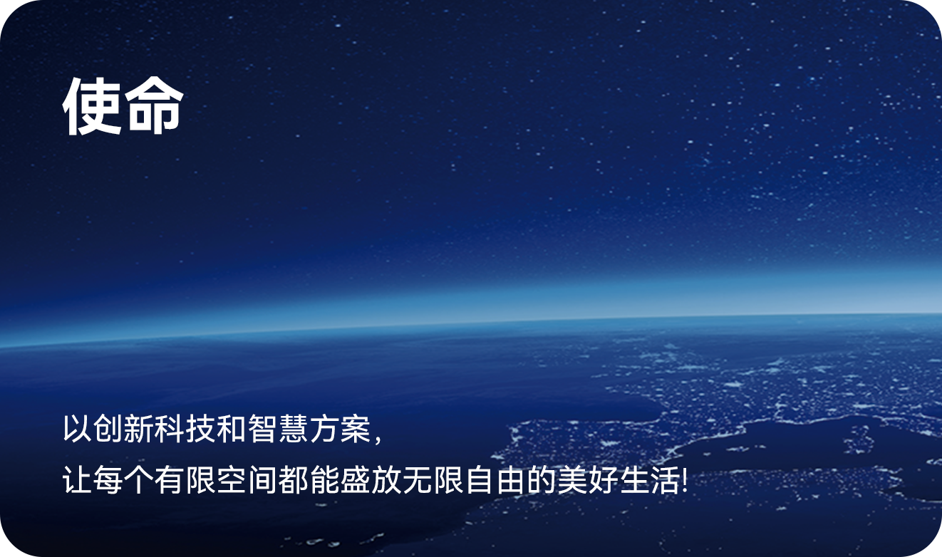 公司成立于 2016 年,是一家聚焦科技创新的家居科技企业。我们以 “以创新科技和智慧方案,让每个有限空间都能盛放无限自由的美好生活!” 为使命。目前业务覆盖美洲、欧洲、亚洲、中东等全球多个地区,2026 年营收计划突破 30 亿+,历史连续 5 年业绩年复合增长率 35%以上,我们致力于用创新方案重构每个生活空间,成为全球领先的家居科技品牌。